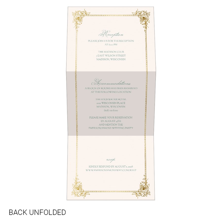 Customizable this folded wedding invitation with your chosen colors, fonts, and personal touches. This trifold invitation is a sophisticated choice for couples who want to make a lasting impression.