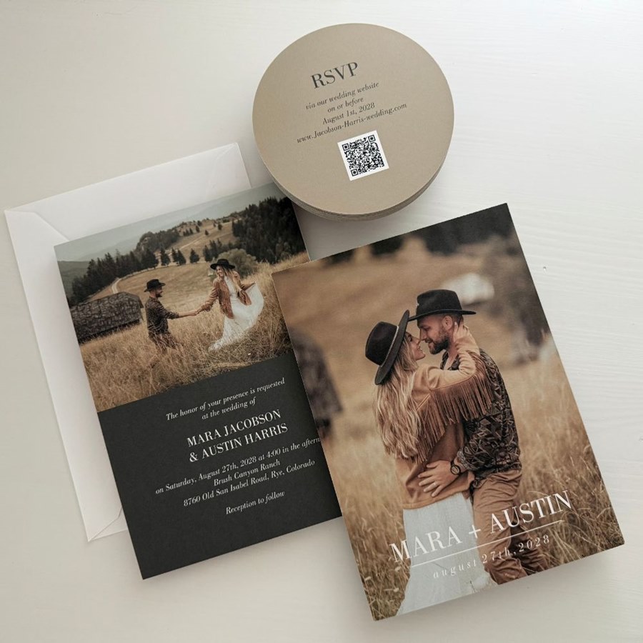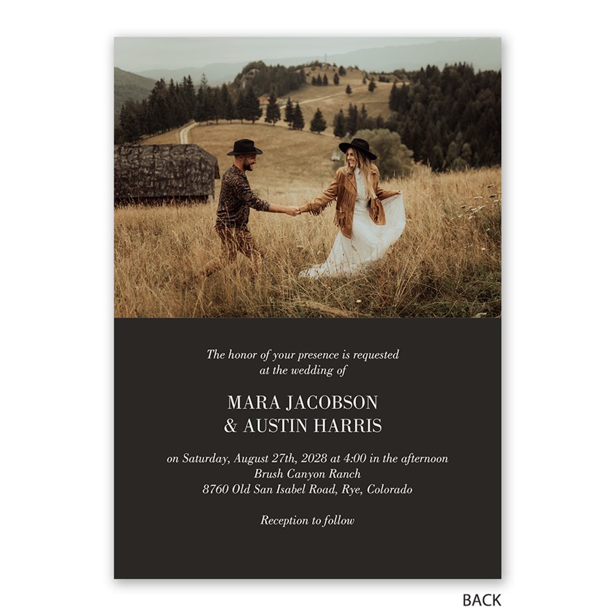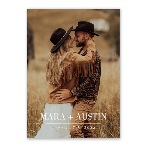 Celebrate your Love Story with a photo wedding invitation that’s effortlessly beautiful and budget-friendly. This two-sided design showcases your favorite photo on the front with your personalized wording and a delicate line artwork that you can reposition to perfectly complement your photo. The back features your wedding details and an additional photo for a personal touch. Matching digital RSVP cards are available.